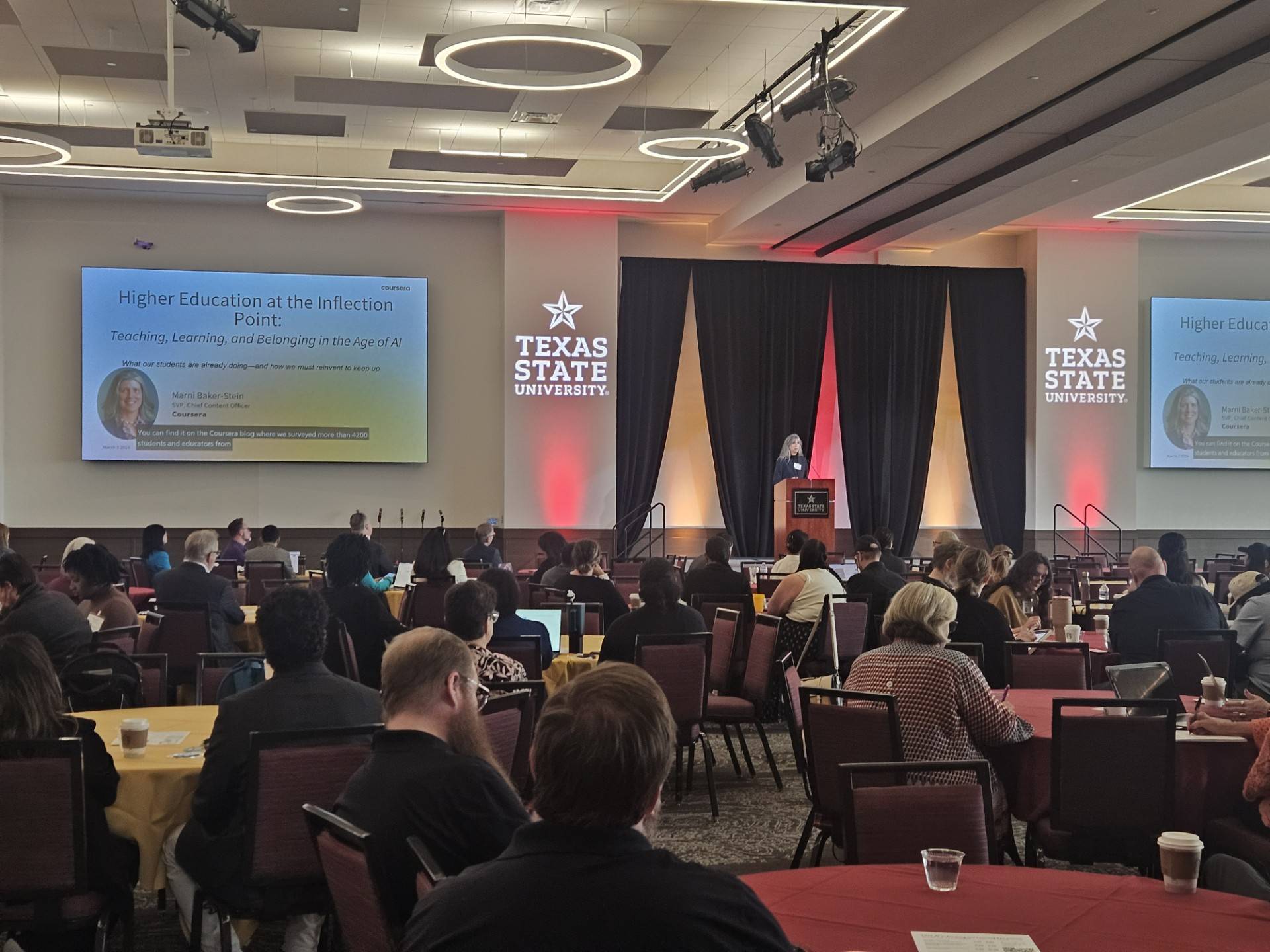 The symposium emphasized the university’s commitment to an “AI‑forward” academic environment and highlighted TXST’s dedication to preparing the campus community for the opportunities and challenges AI presents in learning and research. Keynotes from Coursera Chief Content Officer Marni Baker Stein and representatives from multiple institutes provided national insight into the evolving role of AI in curriculum design, student support, and workforce readiness. Industry partners, including Google and Oracle, contributed additional perspectives through workshops and demonstrations throughout the event.